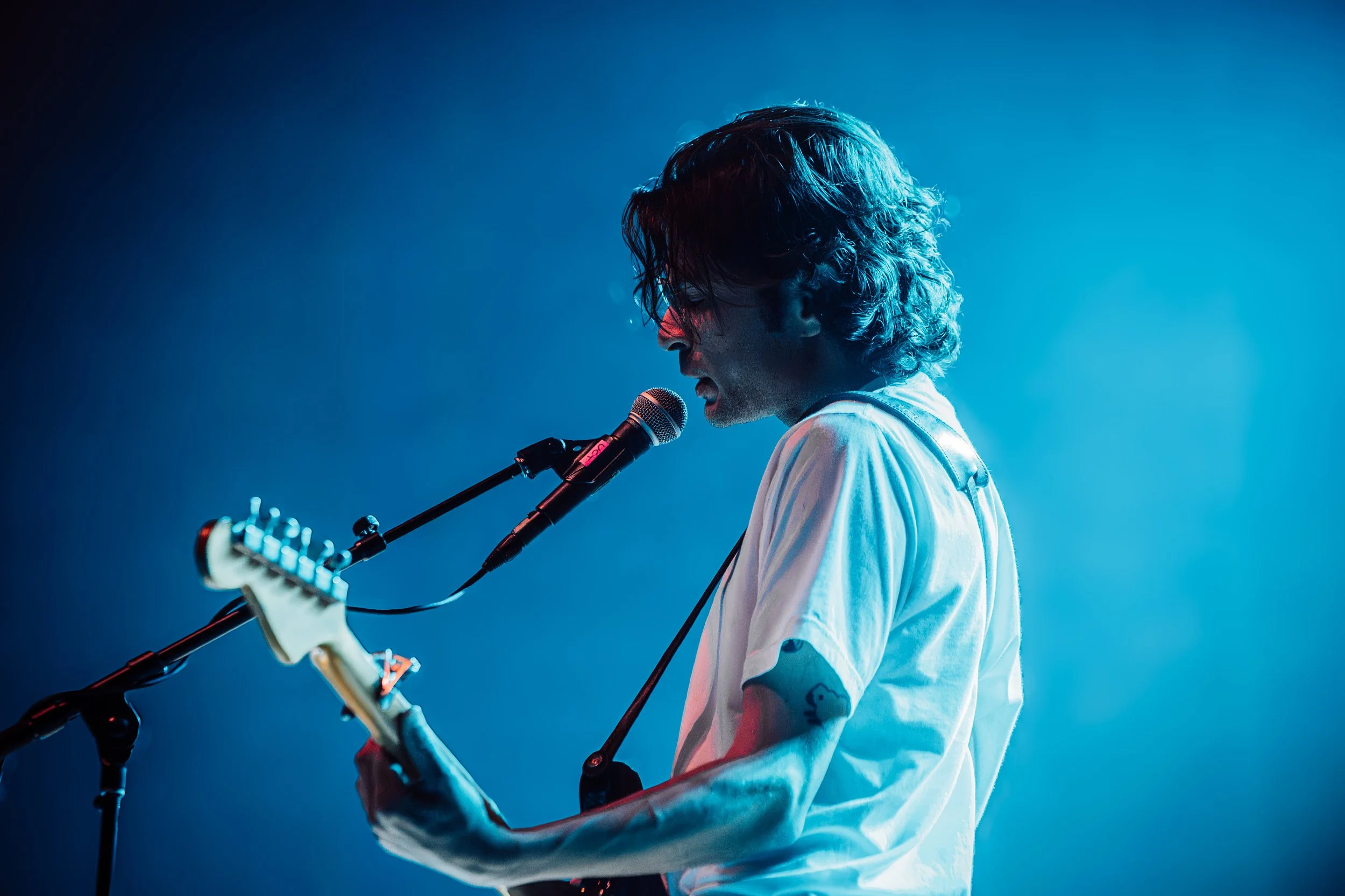 When Turnover took the stage, they didn’t waste time with introductions. From the opening notes of “Cutting My Fingers Off,” it was clear this show was for the fans — many of whom had grown up with Peripheral Vision as their coming-of-age soundtrack. Bathed in soft hues of purple and blue, the band moved through the album’s tracklist with a calm confidence. Austin Getz’s vocals felt weightless, almost ghostlike, floating above the reverb-soaked guitars.