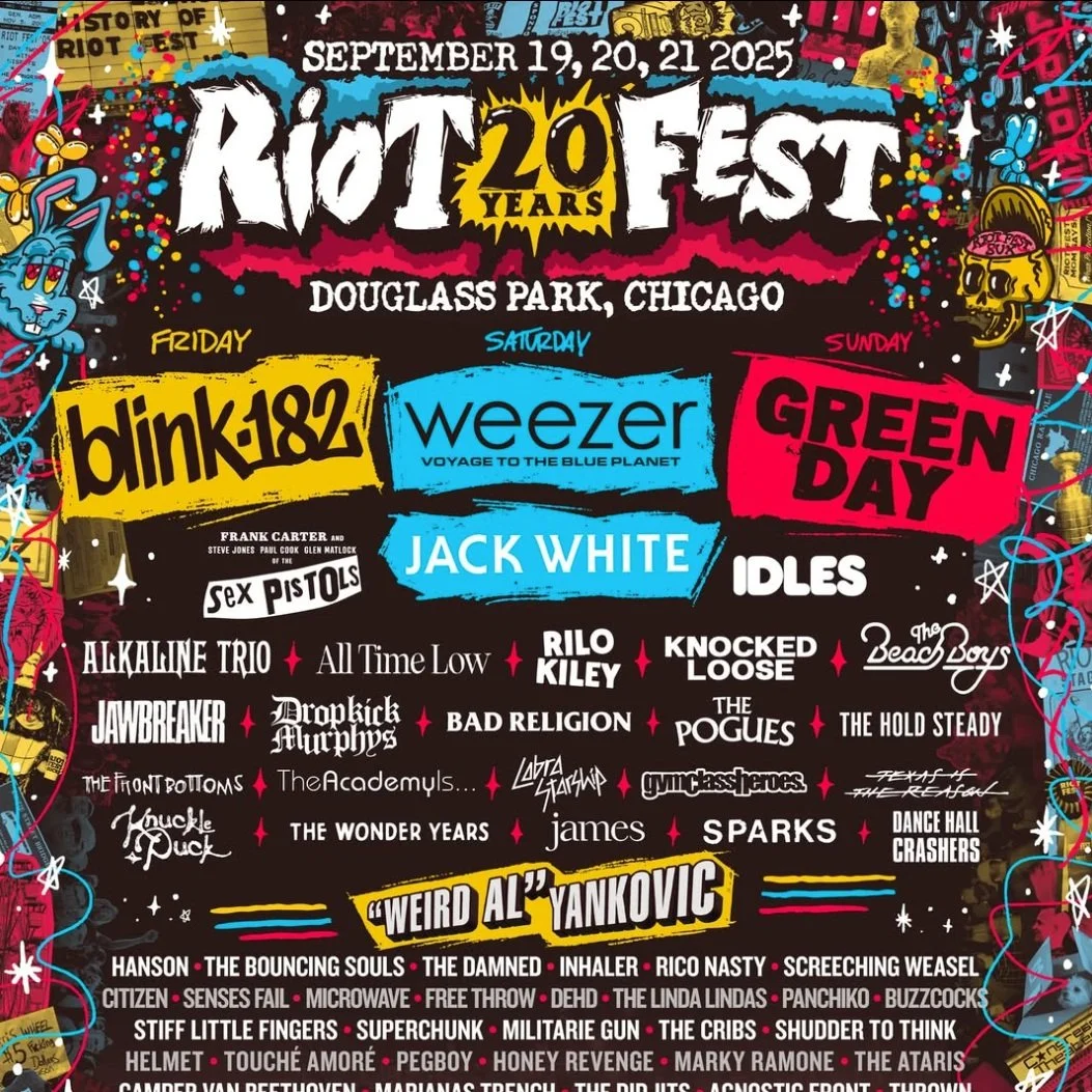 The Riot Fest lineup for 2025 is here, and it features music icons like Green Day, Blink-182, and more!